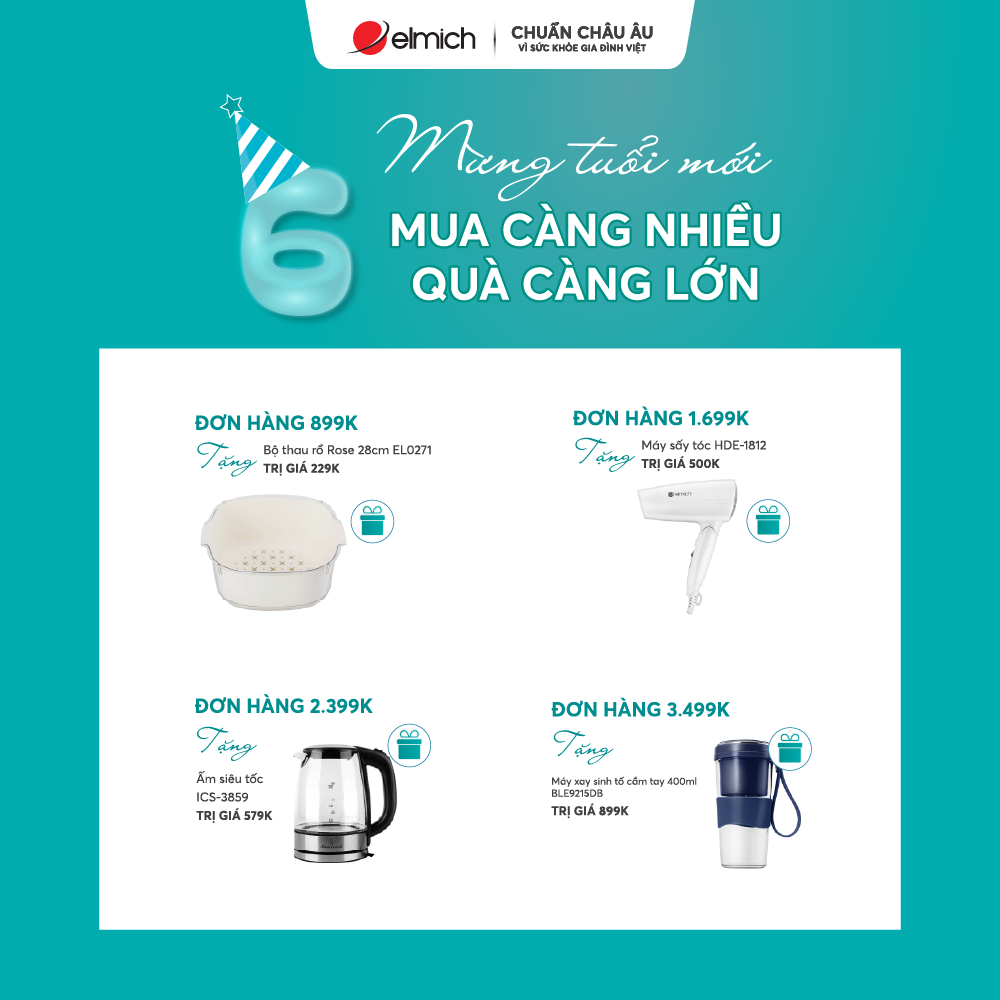 - Đơn hàng từ 3.499K tặng ngay máy xay sinh tố cầm tay 400ml Elmich BLE9215DB trị giá 899k