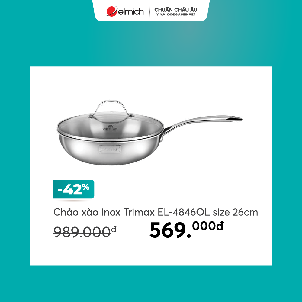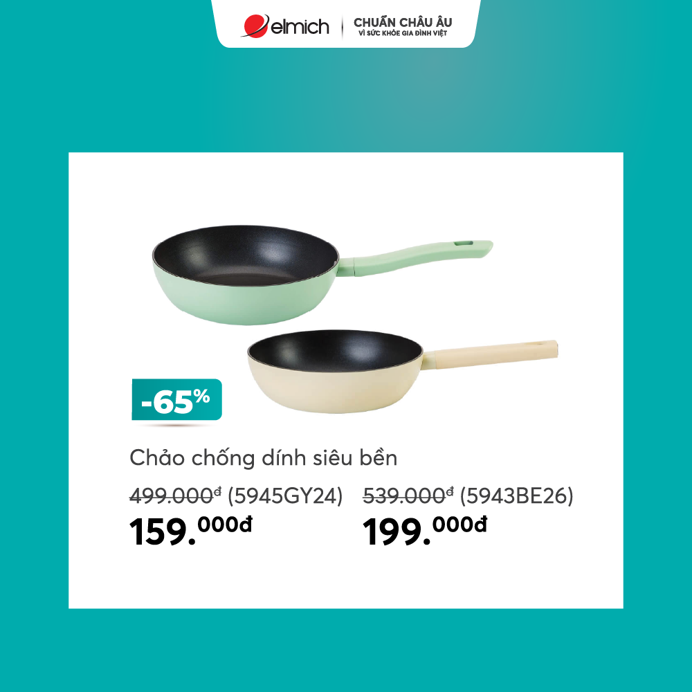 - Chảo chống dính siêu bền Elmich El-5943BE26 size 26cm chỉ 199K, giá gốc 539K