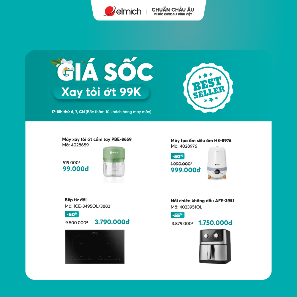 - Bếp từ đôi Elmich ICE-3495OL chỉ 3.790K, giá gốc 9.500K
