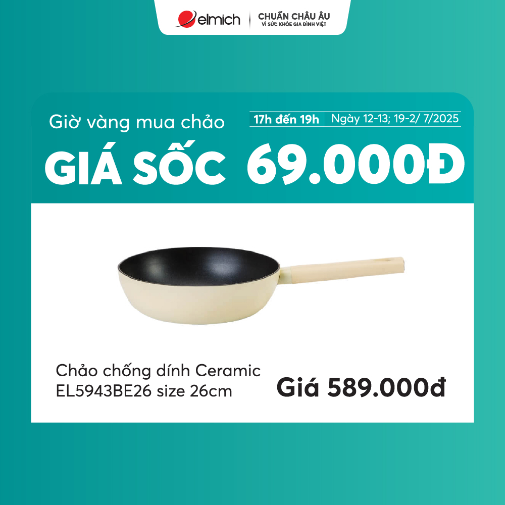 - Chảo chống dính Ceramic Elmich EL5943 size 26cm chỉ 69K (giá gốc 589k)