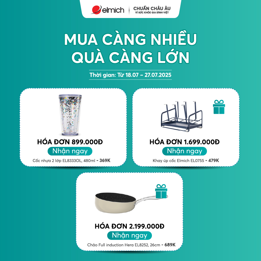 - Đơn hàng từ 1.699K tặng ngay Khay úp cốc Elmich EL0756 trị giá 479k