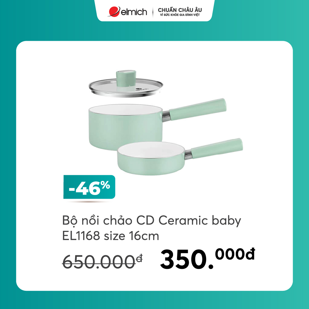 - Bộ nồi chảo chống dính Ceramic Elmich baby EL1168 size 16cm chỉ 350k, giá gốc 650k