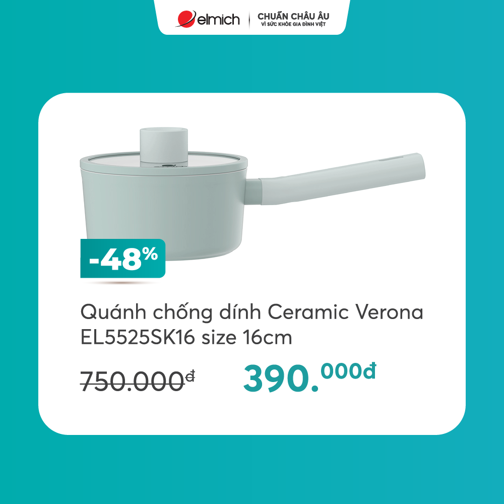 Quánh chống dính Ceramic Verona EL5525SK16 size 16cm chỉ 390K, giá gốc 750K