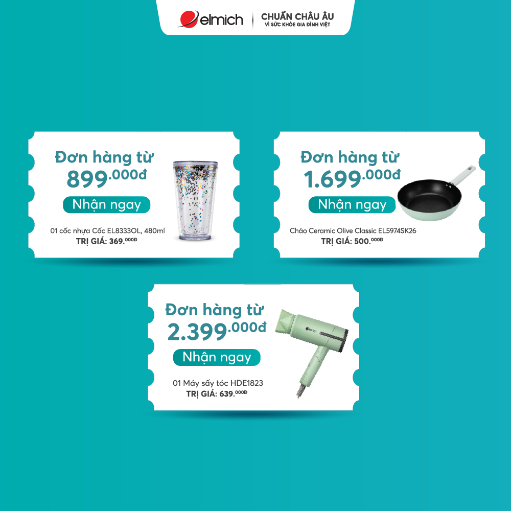 Đơn hàng từ 2.399K tặng ngay máy sấy tóc Elmich HDE1823 trị giá 639k