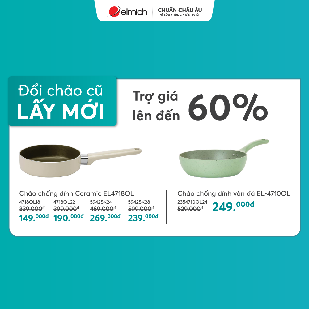 Đơn hàng từ 1.699K tặng ngay chảo chống dính Ceramic Elmich Olive Classic EL5974SK26 size 26cm trị giá 500k