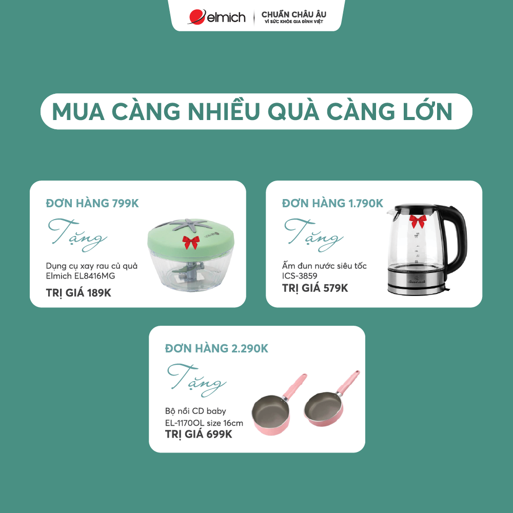 - Đơn hàng từ 2.290K tặng ngay bộ nồi chống dính baby EL-1170OL size 16cm trị giá 699K