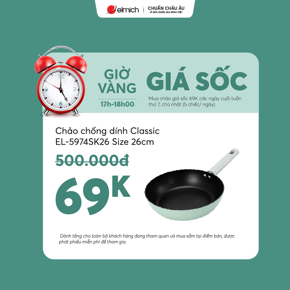 Chỉ 69K sở hữu ngay Chảo chống dính Elmich EL-5974SK26 size 26cm
