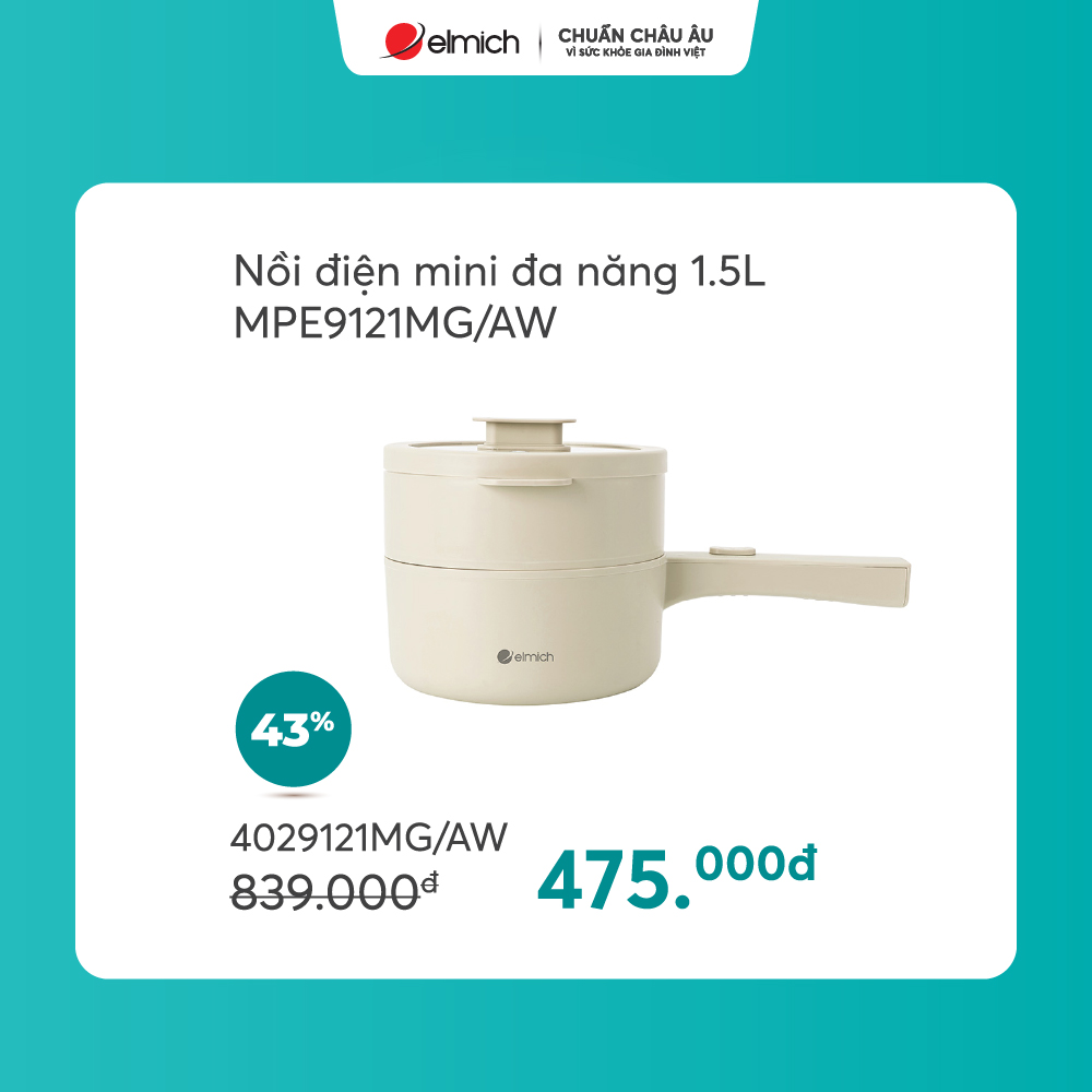 - Nồi điện mini đa năng 1.5L Elmich MPE9121AW/MG chỉ 475K, giá gốc 839K