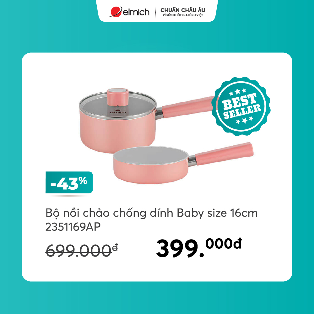 - Bộ nồi chảo chống dính Elmich Baby size 16cm chỉ 399K, giá gốc 699K