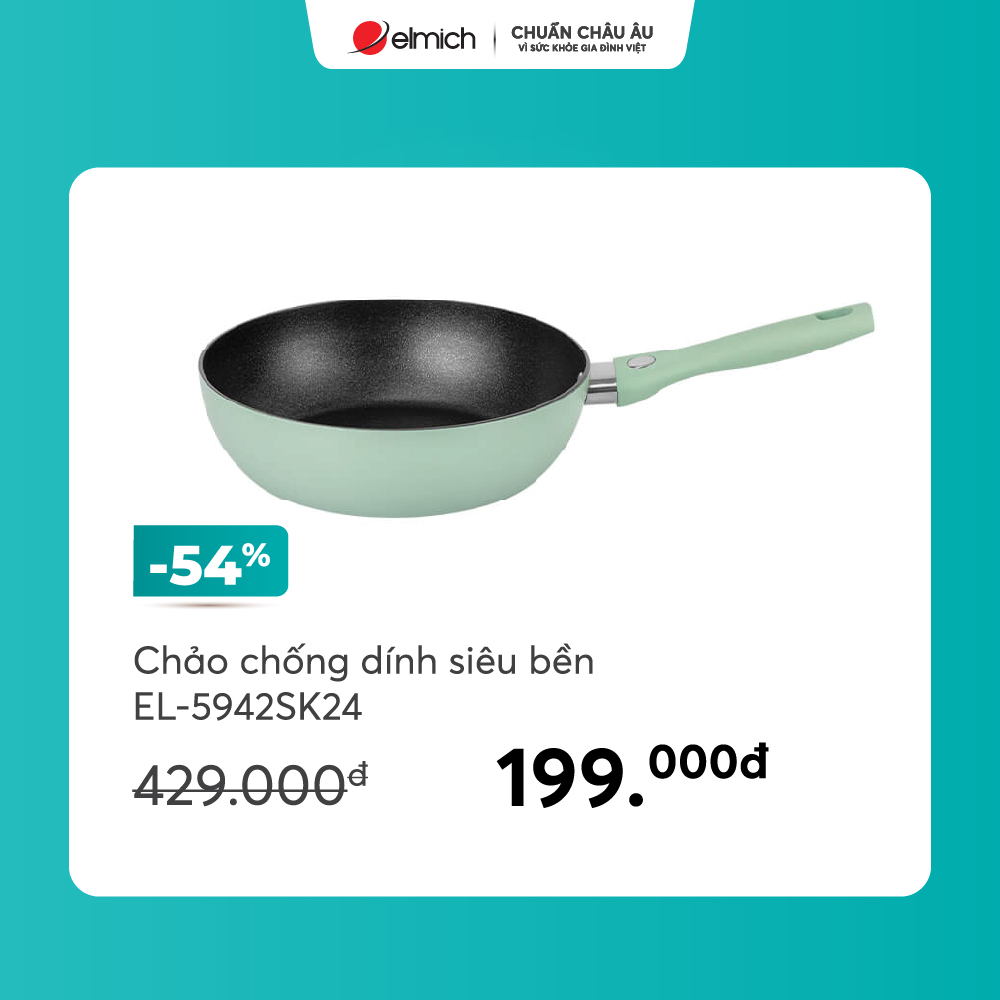 - Chảo chống dính siêu bền Elmich El-5942SK24 size 24cm chỉ 199K, giá gốc 429K