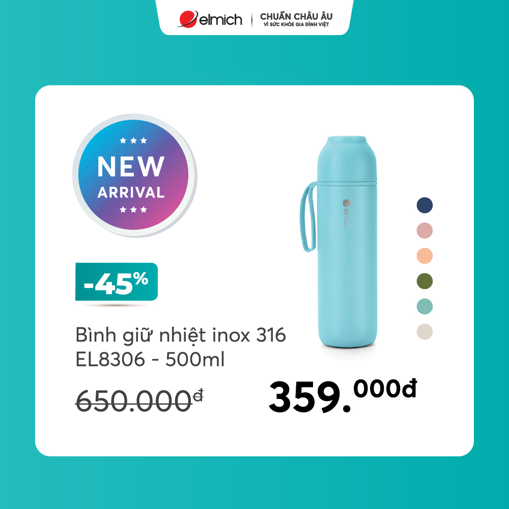 - Bình giữ nhiệt inox 304 Elmich EL8306AB/NB/OV/PF/PK/WH dung tích 400ml chỉ 359k, giá gốc 650k