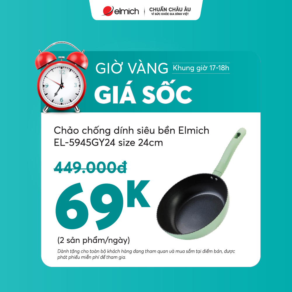 - Chảo chống dính siêu bền Elmich EL-5945GY24 size 24cm chỉ 69K (giá gốc 449k)