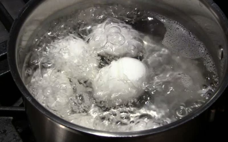 Trong lúc đợi thịt thấm gia vị, bạn cho trứng vào nồi luộc. Để trứng đậm vị và dễ bóc hơn, bạn cho vào nồi luộc trứng với 1 ít muối hạt. Giữ mức nhiệt độ bếp ở mức vừa nhỏ cho trứng không bị vỡ vỏ.