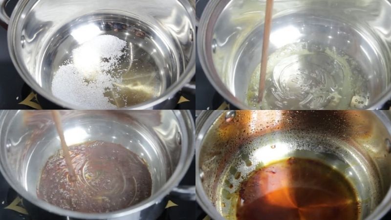• Thắng nước màu cho món kho đẹp mắt: Nếu muốn nước kho có màu nâu đẹp tự nhiên, bạn có thể thắng đường trước khi cho thịt vào kho. Chú ý không để đường cháy khét mà chỉ chuyển sang màu cánh gián.
