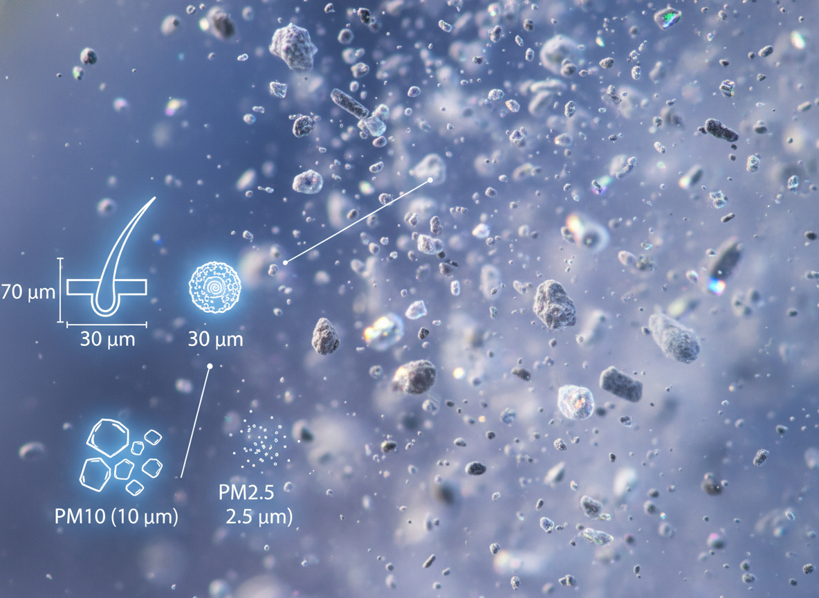 Bụi mịn PM2.5 là những hạt bụi có kích thước nhỏ hơn hoặc bằng 2.5 micromet — tương đương 1/30 sợi tóc người. Với kích thước siêu nhỏ, PM2.5 có thể: