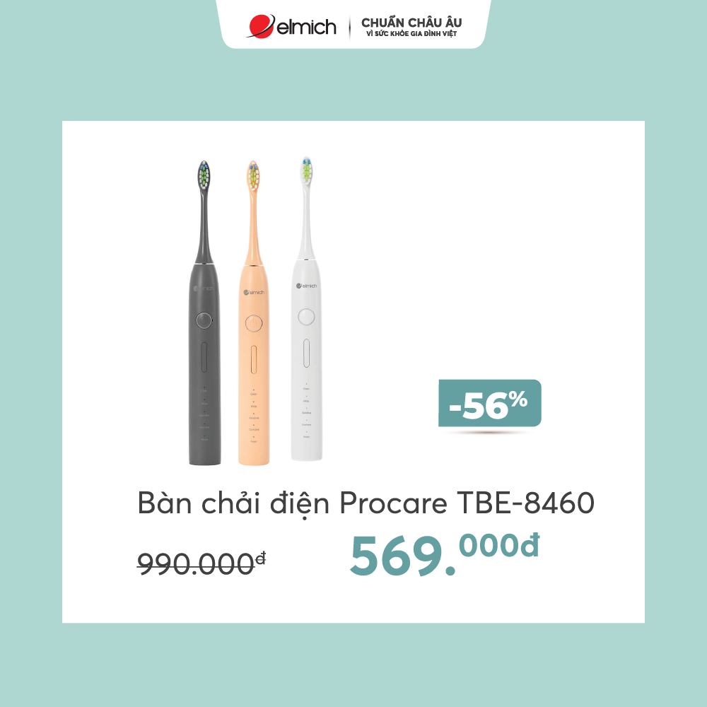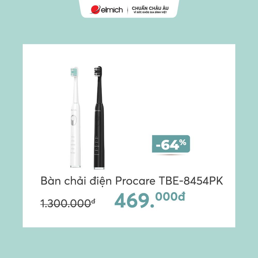 - Bàn chải đánh răng điện Elmich Procare TBE-8454BK/WT chỉ 469K, giá gốc 1.300K