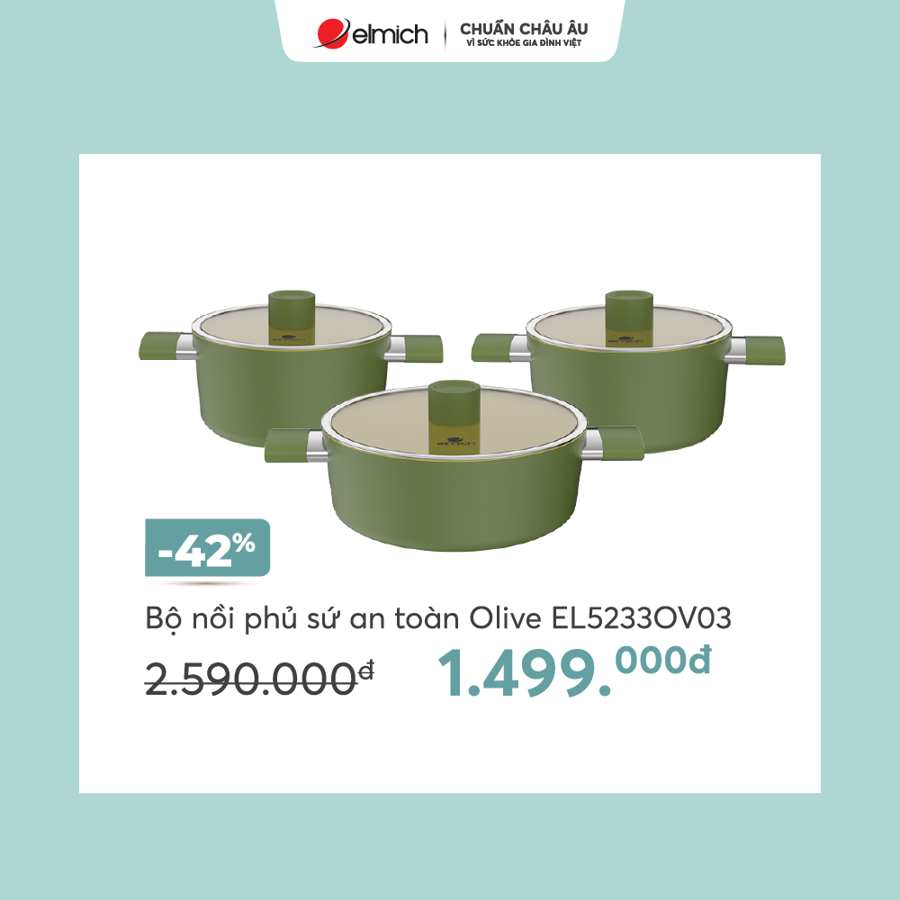 - Bộ nồi phủ sứ an toàn Elmich Olive EL5233OV03 size 18,20,24cm chỉ 1.499K, 2.590K