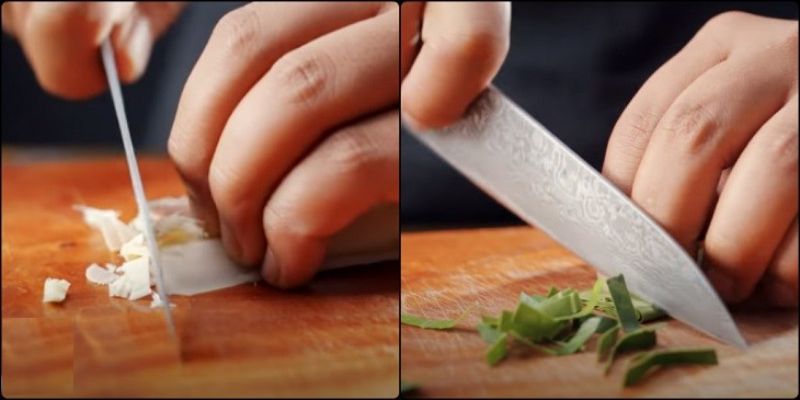 - Rửa sạch lá chanh, cắt nhuyễn 1 nửa còn 1 nửa giữ nguyên.