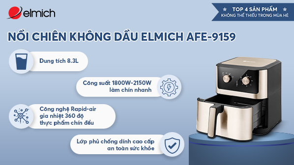 Bữa trưa có Nồi chiên không dầu Elmich AFE-9159 "cân" mọi món ăn, giảm đến 80% lượng dầu mỡ dư thừa, cả nhà yên tâm sống khỏe.