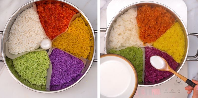 Bước 4: Hấp xôi ngũ sắc